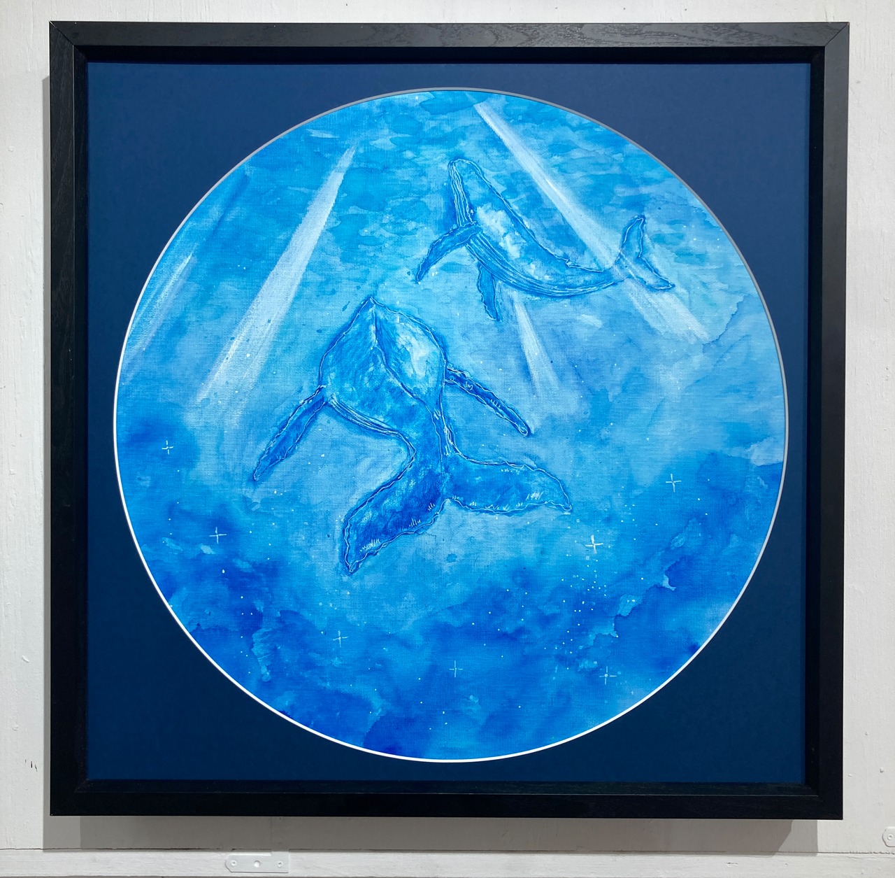 円形キャンバスにアクリル