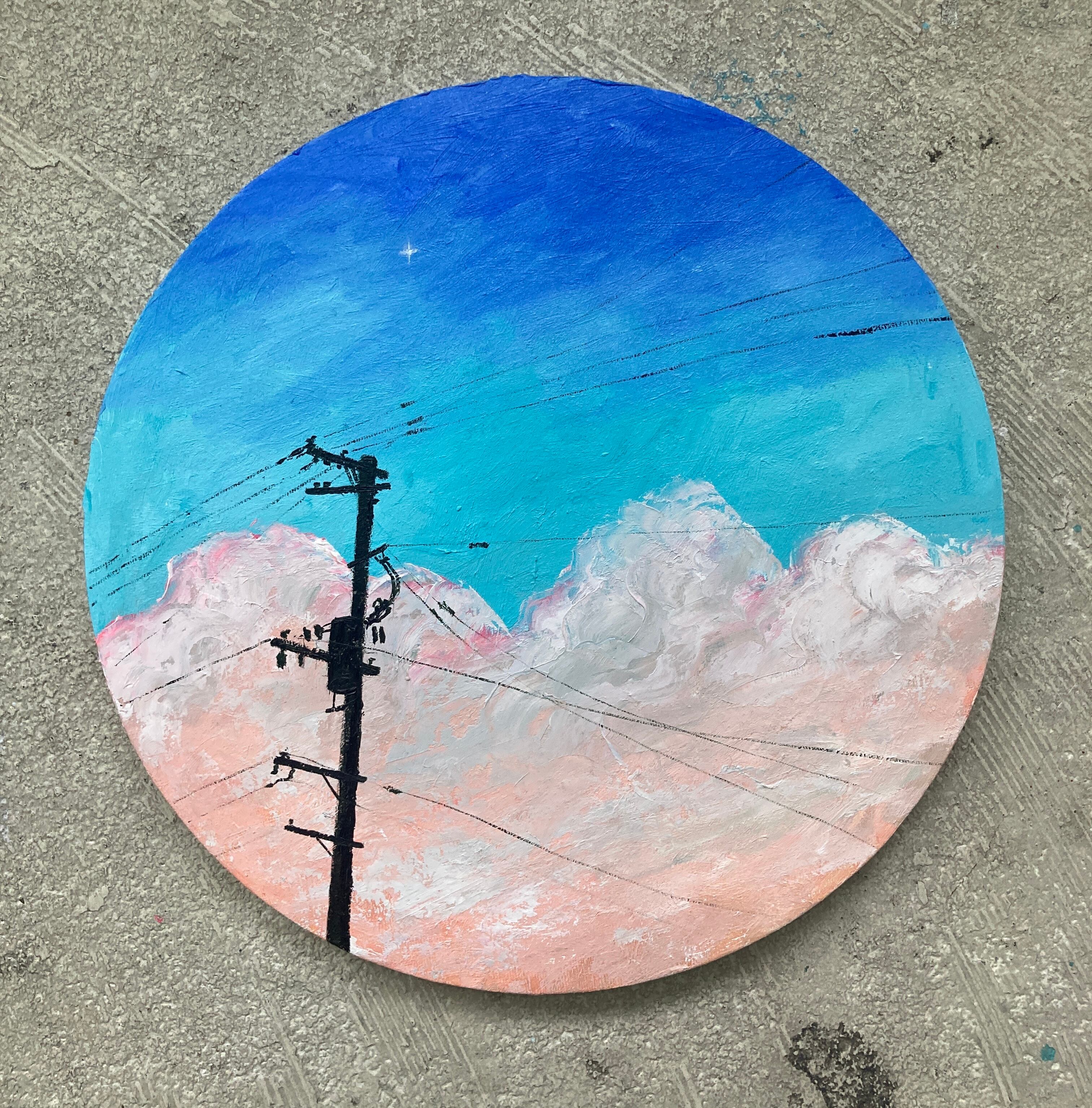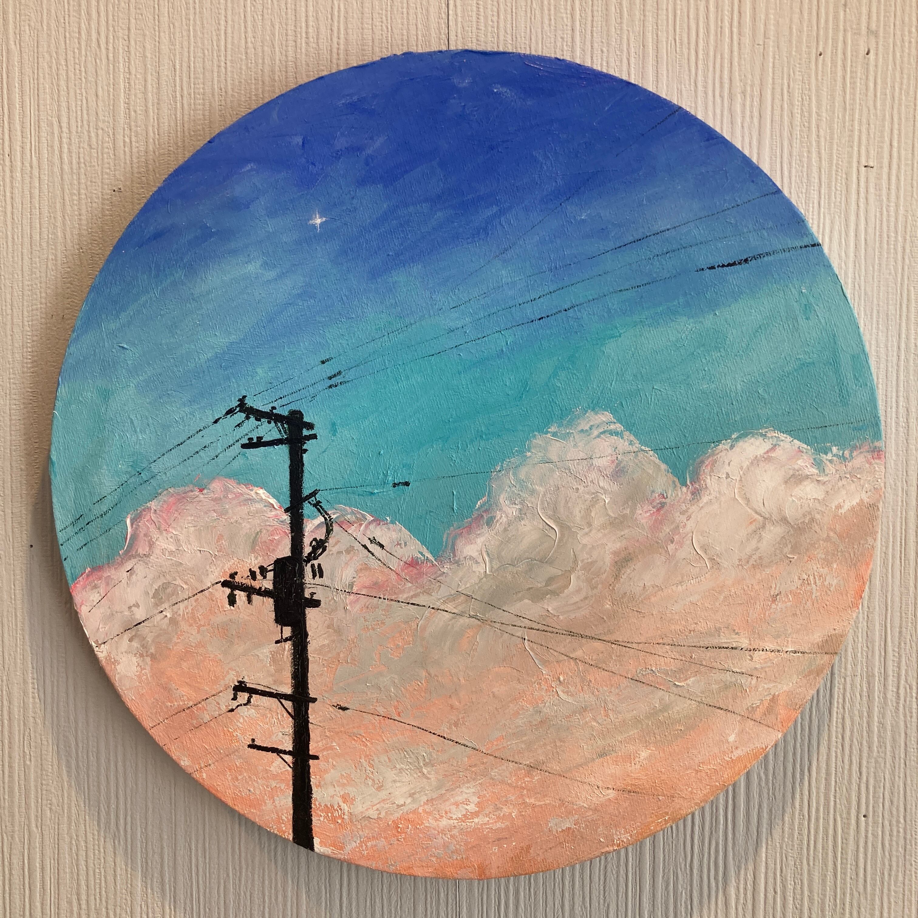 円形キャンバスに油彩